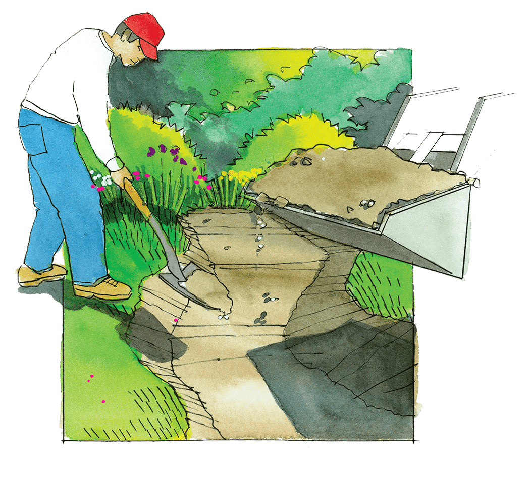Подготовка основания под сухой ручей