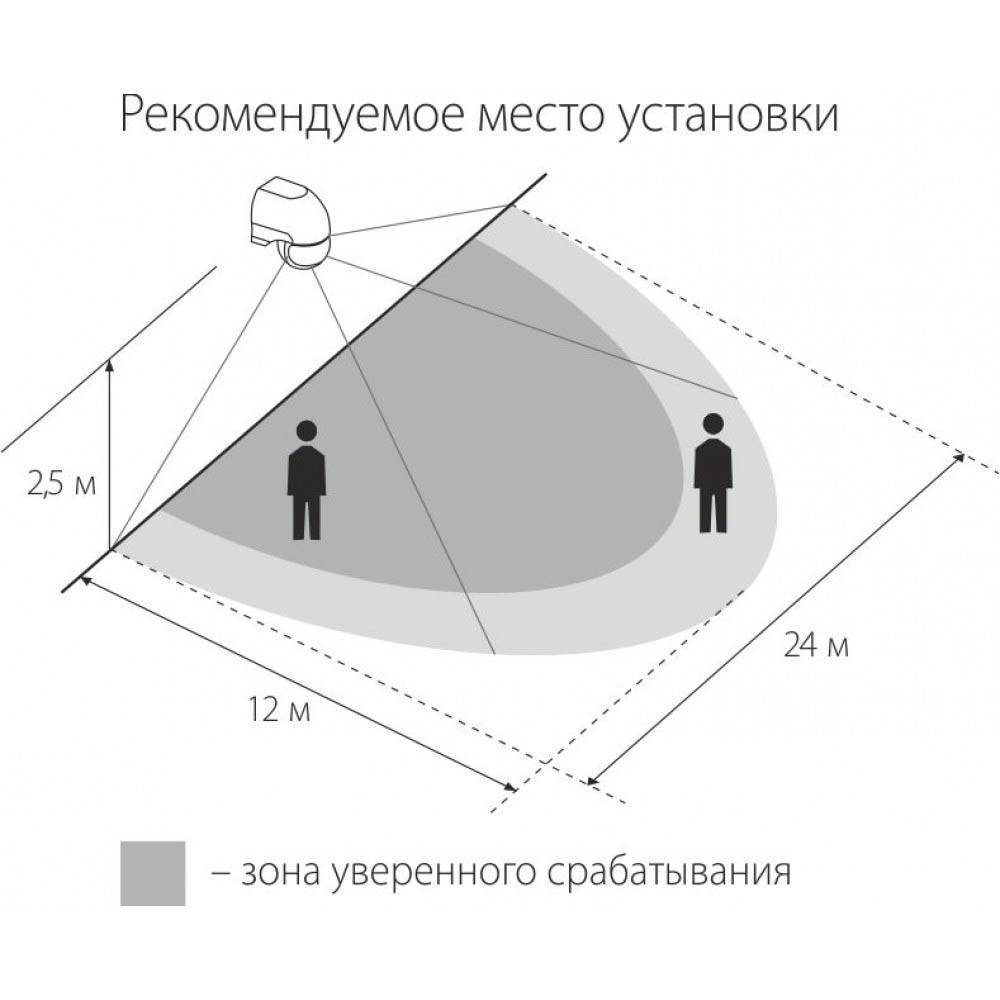 - наличие фотореле, исключающее срабатывание датчика в дневное время;
