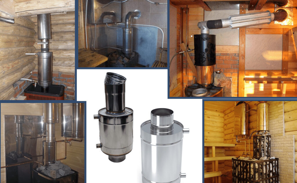 Устройства самоварного типа представляют собой герметичную емкость, опоясывающую дымоход. В процессе нагрева жидкости в таком случае происходит использование тепла от продуктов сгорания, движущихся по трубе.