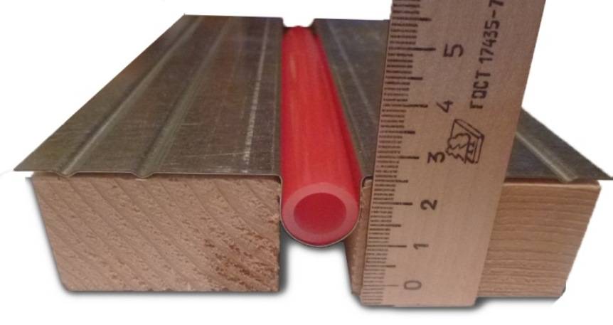 Если бетонная стяжка «съела» бы сантиметров десять высоты до потолка, то высота установки теплораспределительной пластины будет не выше 30 мм. Если же конструкцию смонтировать прямо на балки, то потеря высоты и вовсе будет практически нулевой.