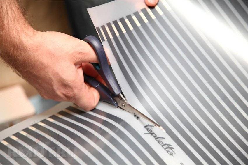 - Производится раскрой элементов обогрева пола в нужных местах.