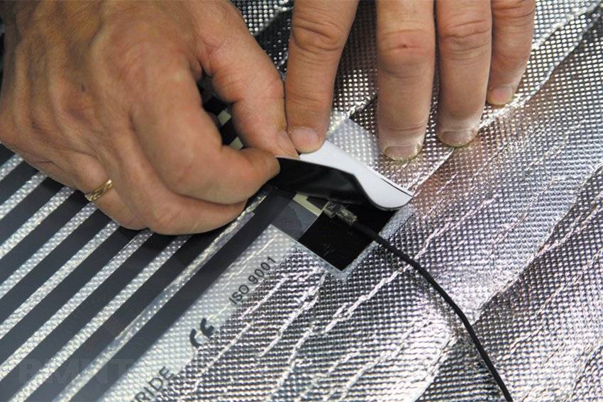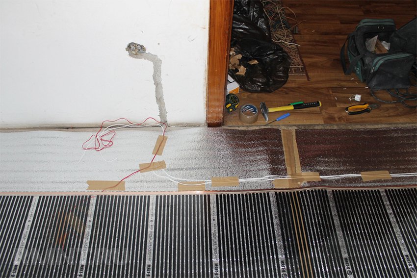 С пленочными полами дела обстоят иначе. В большинстве своем они слишком слабые, чтобы прогревать непосредственно стяжку. Это скорее дополнительный источник обогрева, хотя и довольно мощный. Их кладут сразу под напольное покрытие, прикрывая только подложкой.