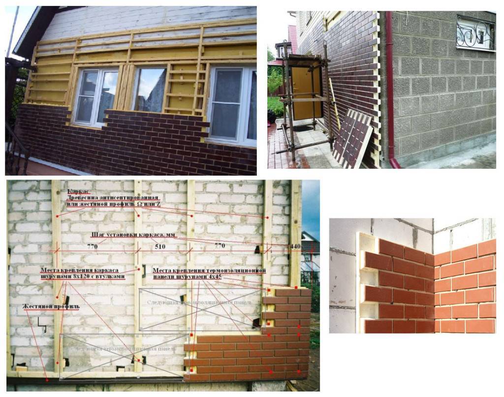 Технология крепления клинкерных панелей к стене здания выполняется специальными каркасными конструкциями.