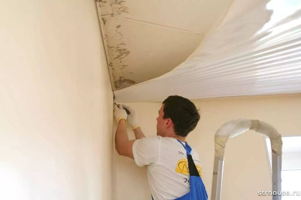 Все подготовительные мероприятия для монтажа натяжного потолка аналогичны тканевым. Отличия начинаются непосредственно с установки потолна.