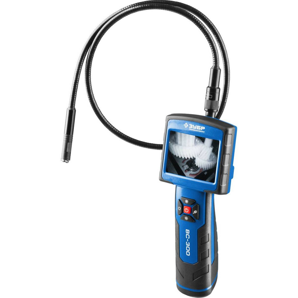 ЗУБР Профессионал BC-300 – видеоскоп от отечественного бренда. На корпусе расположен дисплей размером 3,5 дюйма. Камера закреплена на зонде длиной 1 м. Присутствует функция увеличения изображения в два раза, а также поворота на 180 градусов.