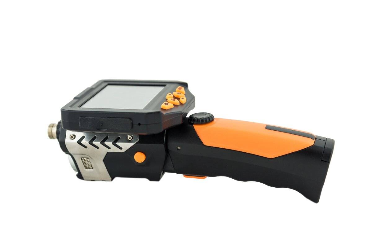 Камера установлена на зонде длиной 5 м. Система подсветки выполнена в виде 4 ярких светодиодов с плавной регулировкой яркости свечения. На корпусе расположен съемный дисплей.