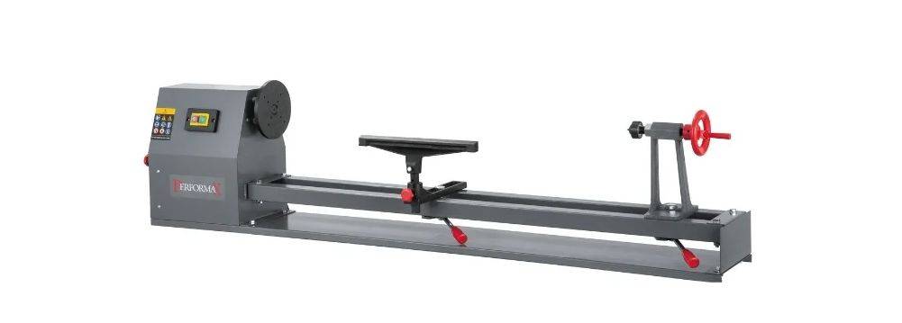 В рейтинг токарных станков по дереву для дома по надежности мы включили бытовой токарный станок JET Performax PWL-1440L 909001M. Это оборудование представляет собой модель бытового класса для обточки деревянных заготовок габаритами до 350х1000 мм: балясин, мебельных ножек, стоек и опор. Токарный станок по дереву для дома применяется в домашних мастерских. 4 пары шкивов позволяют выставлять наиболее подходящий режим вращения планшайбы – 800 об/мин, 1180 об/мин, 1700 об/мин или 2500 об/мин. Потребляемая мощность составляет 350 Вт. Задняя бабка выполнена из чугуна, ход ее пиноли равняется 25 мм. Материал станины – сталь. В основании станка предусматриваются отверстия для жесткой фиксации на верстаке.