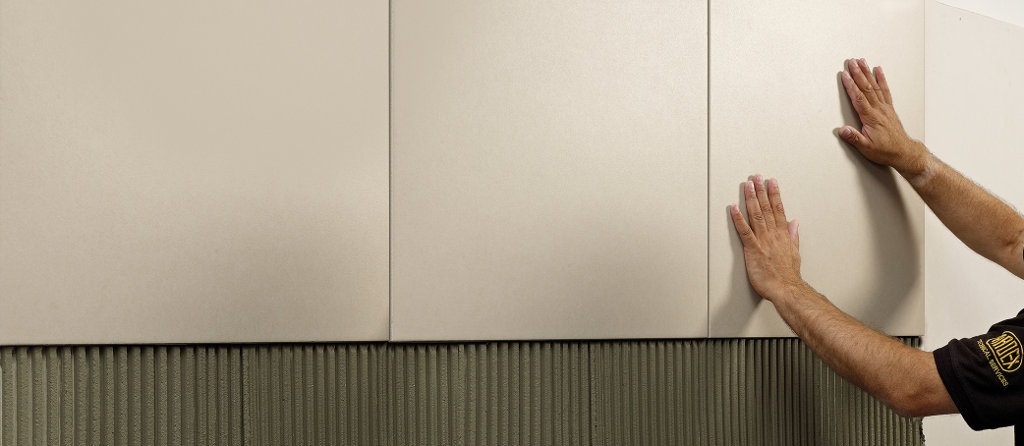 Специалисты рекомендуют при укладке плитки больших размеров наносить плиточный клей Юнис для внутренних и внешних работ и все другие, как на базовую основу, так и на основание плитки. При работе с керамогранитными плитами следует использовать плиточный клей Ceresit для керамогранита, процентное содержание модифицированных добавок в котором несколько выше, чем у обычных составов. Для крепления облицовочного материала из натурального или профильного камня лучше всего подходит плиточный клей Ceresit для натурального камня.