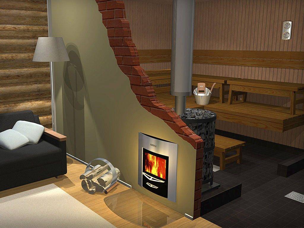 - с выносной топкой камина (для создания эффекта камина в комнате отдыха).