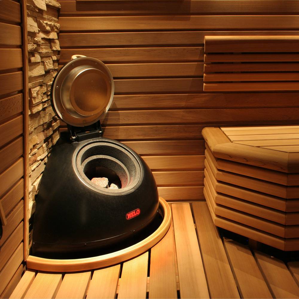 В модельном ряде Helo тоже присутствует нужный вариант. У этой печки-термоса есть название, которое очень сложно выговорить – Ukkotonttu. Ее конструкция также подразумевает размещение камней под крышкой. Ее закрывают на период разогрева, а открывается она, когда нужно увеличить температуру или извлечь пар.