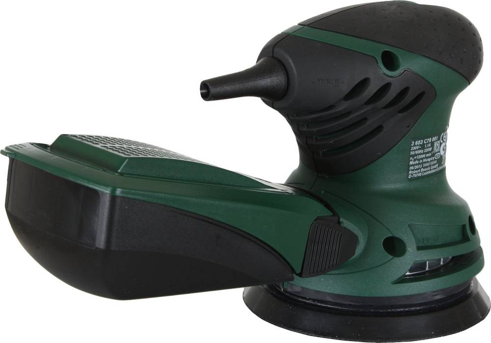 Производительность умеренная, для бытовых условий ее вполне достаточно. Расходные материалы стоят дешево, поэтому устройство весьма экономично. Если грамотно ей пользоваться, то рабочее останется почти чистым. Дело в том, что у данной шлифовальной машинки имеется активная система отсасывания пыли. На валу двигателя находится дополнительная крыльчатка, которая будет засасывать воздух через специальные отверстия в платформе и направлять его в соответствующий патрубок, который закрывается специальным мешком для пыли либо через переходник подключается к пылесосу. Предусмотрена электронная регулировка количества оборотов.