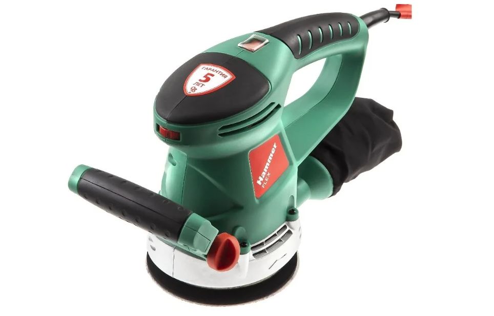 Hammer OSM480 — это небольшая эксцентриковая шлифовальная машина. Амплитуда колебаний модели составляет всего 2 мм. Минимальная их частота составляет 12 000 в минуту, а максимальная — 24 000 в минуту. Частота вращения рабочей части устройства варьируется от 6000 до 12 000 оборотов в минуту. Диаметр круга, с которым работает шлифмашина, 125 мм. В качестве крепления используется специальная липучка. Hammer OSM480 поддерживает пользовательскую регулировку частоты вращения, что позволяет подбирать оптимальные обороты для каждого конкретного случая. Подключать устройство можно к обычной электрической сети. Его максимальная потребляемая мощность 260 Вт, а это достаточно невысокий показатель для шлифмашин с такими параметрами, благодаря чему модель можно назвать экономной. Конструкцией предусмотрен патрубок для установки строительного пылесоса. Корпус шлифовальной машины Hammer OSM480 изготовлен из качественного пластика, а все рабочие детали металлические. Устройство весит всего 1,5 кг, с ним удобно работать, его легко транспортировать и переносить в руках. Модель выполнена в сочетании черного и зеленого цветов.