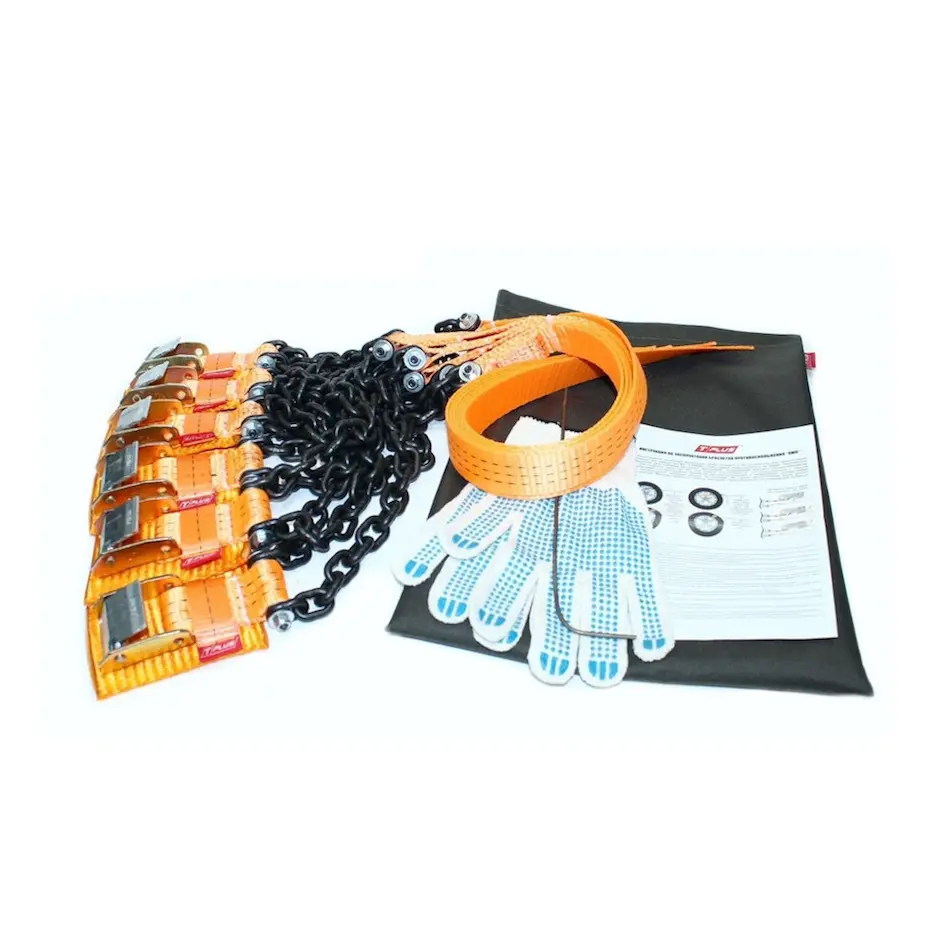 Товар уфимской компании Tplus, производящей стропы и аксессуары к ним, ремни, тросы и иную текстильную продукцию. Данные браслеты противоскольжения подходят на все типы литых колесных дисков от R16 до R21. На штампованных дисках рекомендуется использовать подкладки под ленты для защиты от перетирания об острые края.