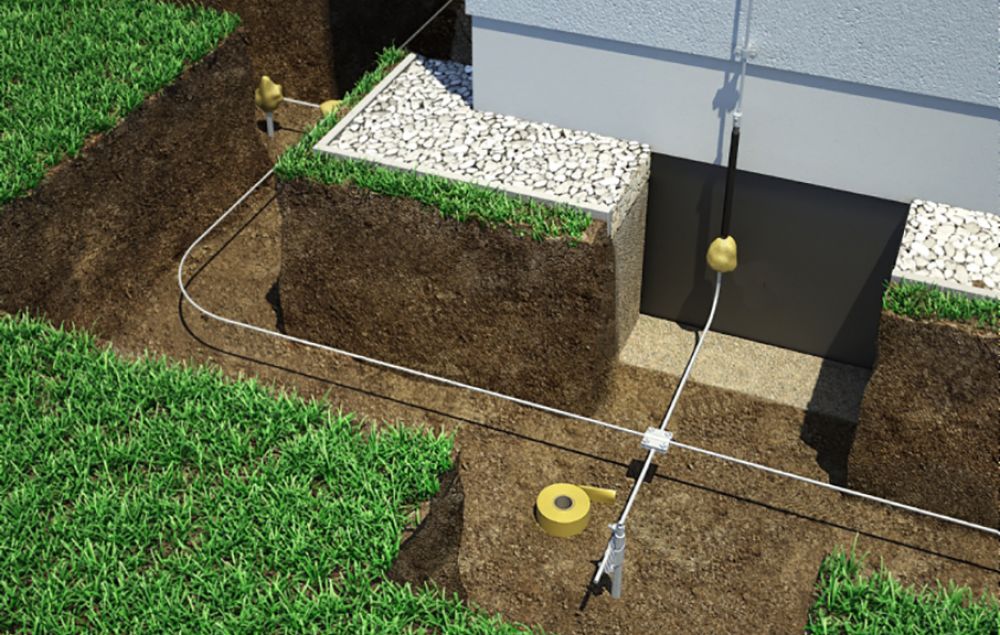 Расстояние трассы заземлителя от стены также регламентируется. В отличие от вводного кабеля оно должно быть не менее 1 метра.