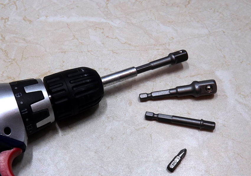 Есть модели с шестигранным отверстием, благодаря которому приспособление не соскальзывает с шурупа.