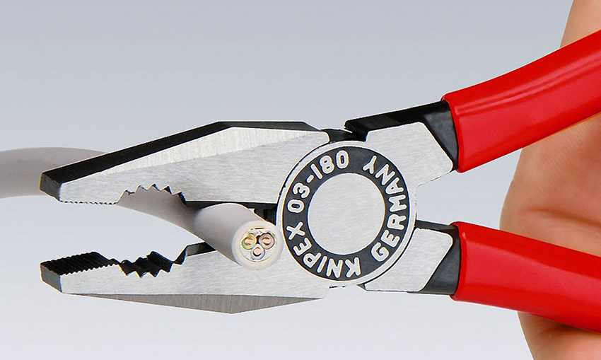 - Комбинированные плоскогубцы — на рабочей поверхности возле плоских губок сделана либо выемка с насечками для удержания округлых деталей, либо режущая кромка, как у кусачек.