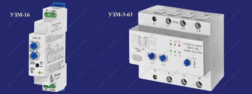 Меандр производит еще два типа однофазных реле напряжения – это УЗМ-50М и УЗМ-16. Главное отличие УЗМ-50М от УЗМ-51М, пожалуй только в том, что у последнего, как мы знаем можно выставить уставку по срабатыванию самостоятельно, а в УЗМ-50М – уставка “жесткая”, по верхнему пределу напряжения – 265 В, а по нижнему – 170 В.