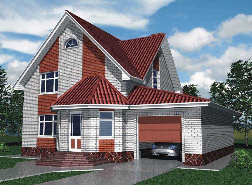 Дом с гаражом и крыльцом, покрытых трехскатными крышами Источник pinterest.com