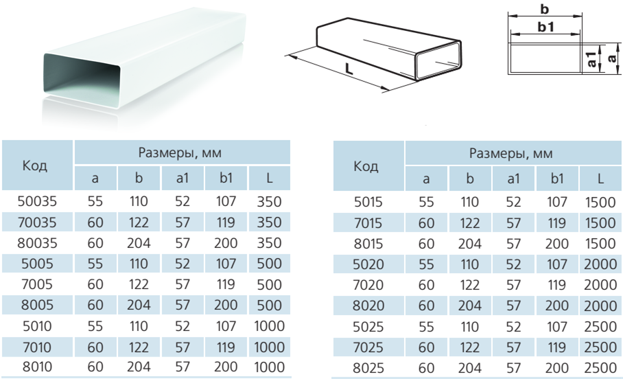 Размеры пластиковых коробов: 8080 мм, 100100 мм, 125125 мм, 55110 мм, 50120 мм, 60204 мм, 90220 мм.
