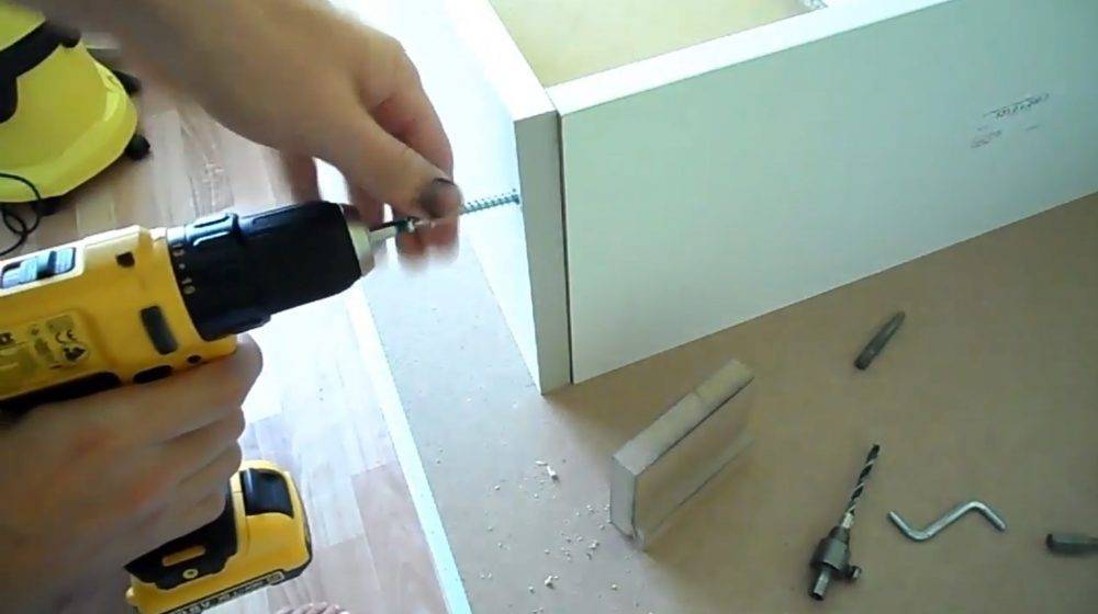 После сборки тумбочки, нужно хорошенько пропылесосить конструкцию, дабы удалить с нее пыль, а затем протереть влажной тряпкой, чтобы окончательно удалить грязь. После на фасад устанавливается фурнитура в виде ручек и стекла, если оное было предусмотрено проектом.