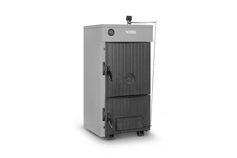 Дрова, брикеты или уголь, заложенные в топку, сжигаются по принципу свечи, а не костра – сверху вниз, а не снизу вверх. Существенную роль для результативности такого метода играет автоматический клапан – регулятор тяги, который расширяется или сужается в зависимости от значения нагрева.