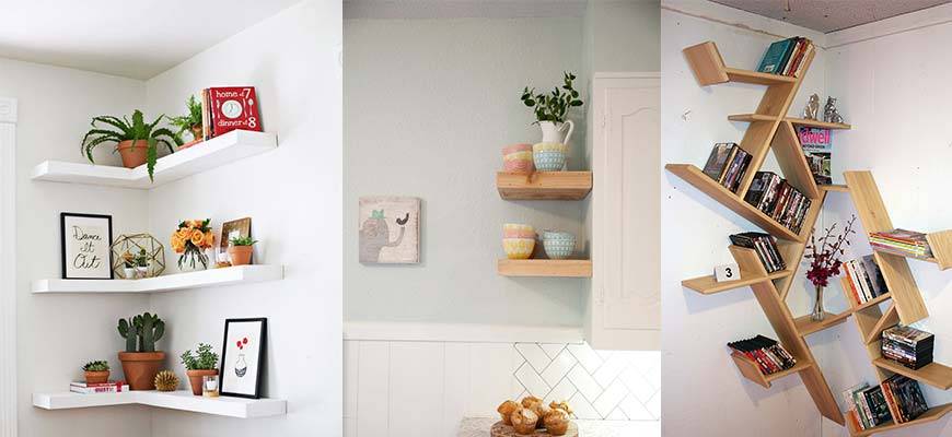 Разновидности угловых полок в комнату в зависимости от их расположения и назначения