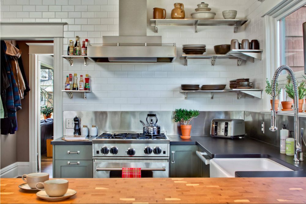 Любая настенная полка может иметь разную форму и дизайн. Они могут быть сложными (с дополнительными элементами), либо простыми. Простые полки могут использоваться на кухне.