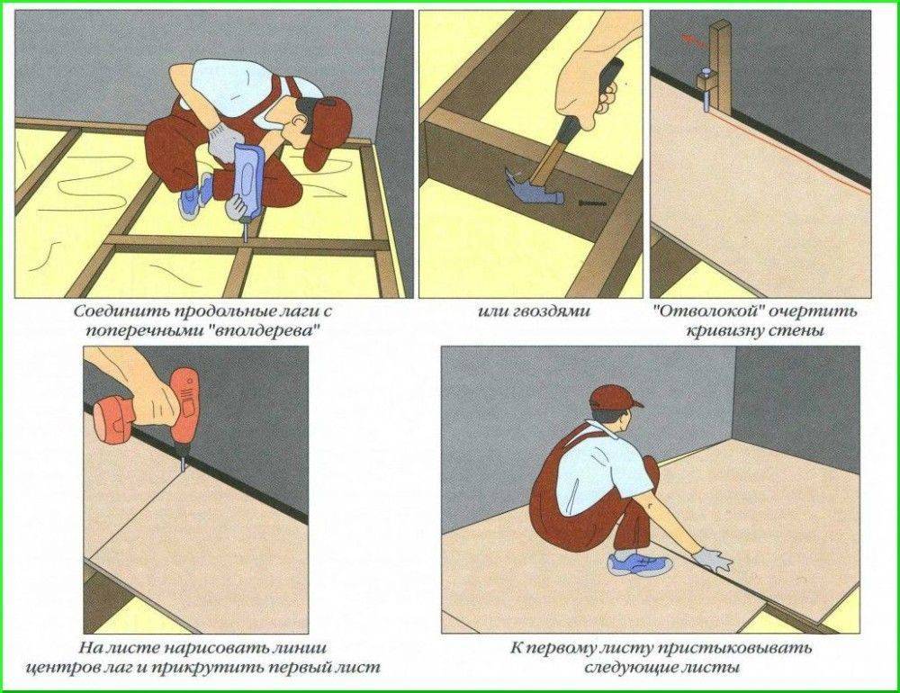 Алгоритм обустройства фанерного настила по лагам