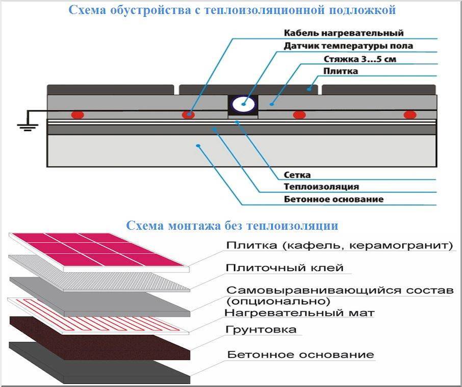 - Конечный слой скрывает электрические и армирующие детали, именно он отвечает за хорошую теплопроводность. Зачастую его выполняют из специальных строительных смесей.