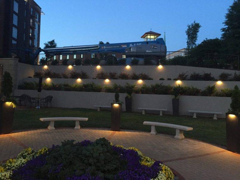 - дорожек – организовывается посредством маломощных моделей, установленных по краям от тротуара, подсветка дорожек используется для выделения пешеходной зоны в темное время суток, она не призвана обеспечивать достаточную видимость на ней;