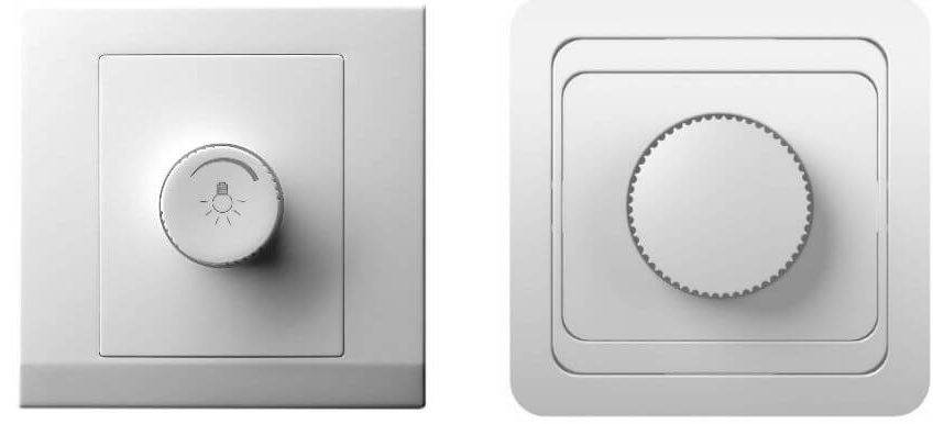 - В зависимости от возможности регулирования освещенности выделяют выключатели с диммером и без него. Диммер дает возможность регулировать световой поток и обычно располагается непосредственно на выключателе. А его работа обеспечивается удерживанием или прокручиванием кнопки.