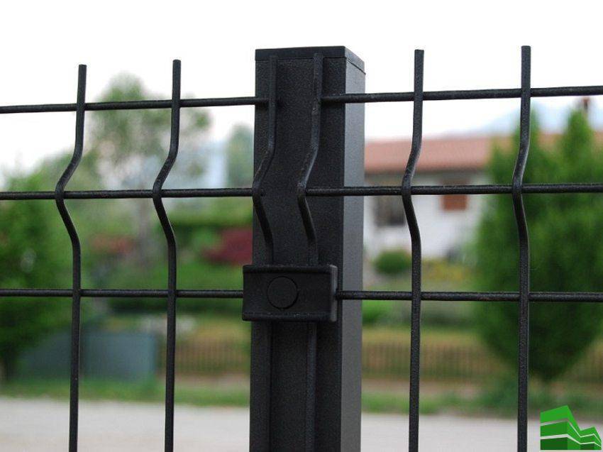 В непосредственном монтаже 3D забора своими руками ничего сложного нет — конструкции из сварной сетки выпускаются готовыми к установке. Остается только прикрепить их к опорным столбам при помощи специальных крепежей. Чаще всего это П-образные крепления, которые прижимают сетку к опоре.