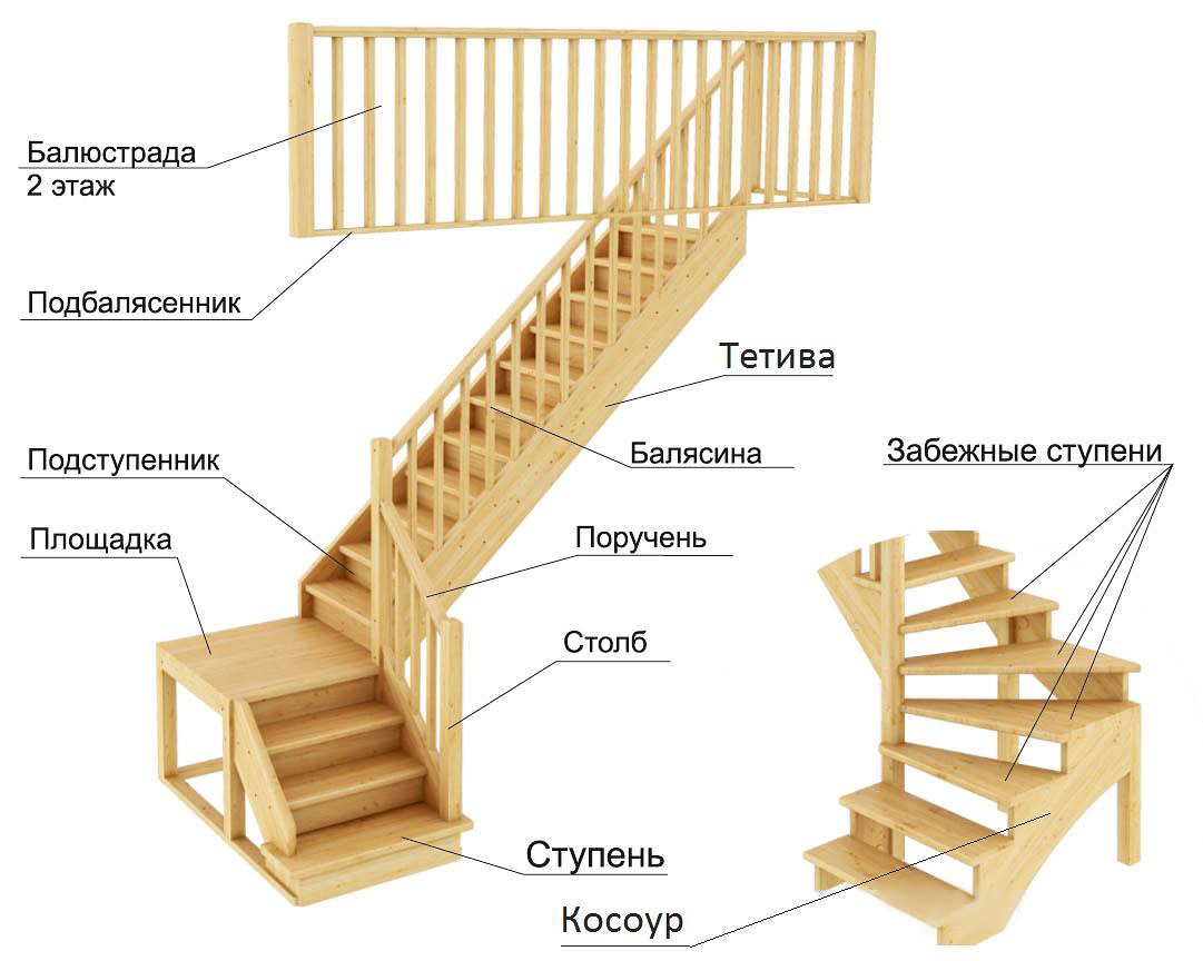 Речь в статье идет о деревянных лестницах, поэтому для крепления балясин нам могут потребоваться следующие элементы:
