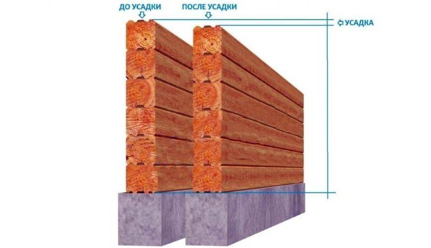 По этой причине каркасные строения почти не подвержены усадке. А вот срубные конструкции, в которых бревна или брусья ориентированы горизонтально, могут менять высоту в достаточно больших пределах. И уплотнение под весом стен межвенцового утеплителя эту проблему только усугубляет.
