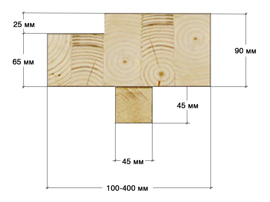 - В паз вставляется шип — брусок толщиной 50 мм. Фиксировать его крепежом нельзя — стена будет скользить по нему, как по рельсе.