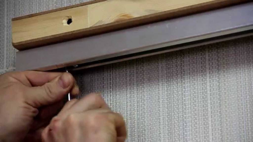 Верхние полозья фиксируются с помощью саморезов. Затем собирают каретку с роликами и вставляют внутрь направляющих. Необходимо проверить, двигается ли механизм в рельсе свободно. По краям направляющих устанавливают ограничители, чтобы полотно не выскочило из колеи.
