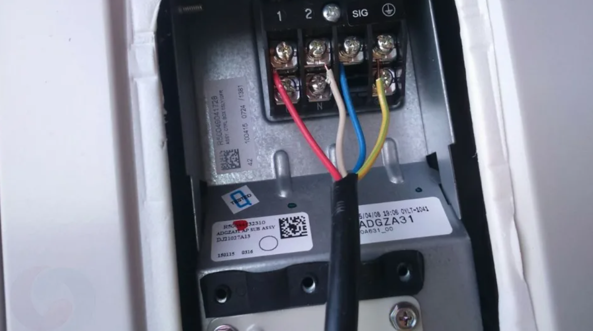 При соединении блоков между собой должна быть соблюдена схема подключения кондиционера. Это делают через каналы, расположенные в стене. Кабель подключают к клеммам, цвет которых такой же, как и у главной проводки. Если уровни расположены с перепадом более 5 м, потребуется изготовление специальной петли.