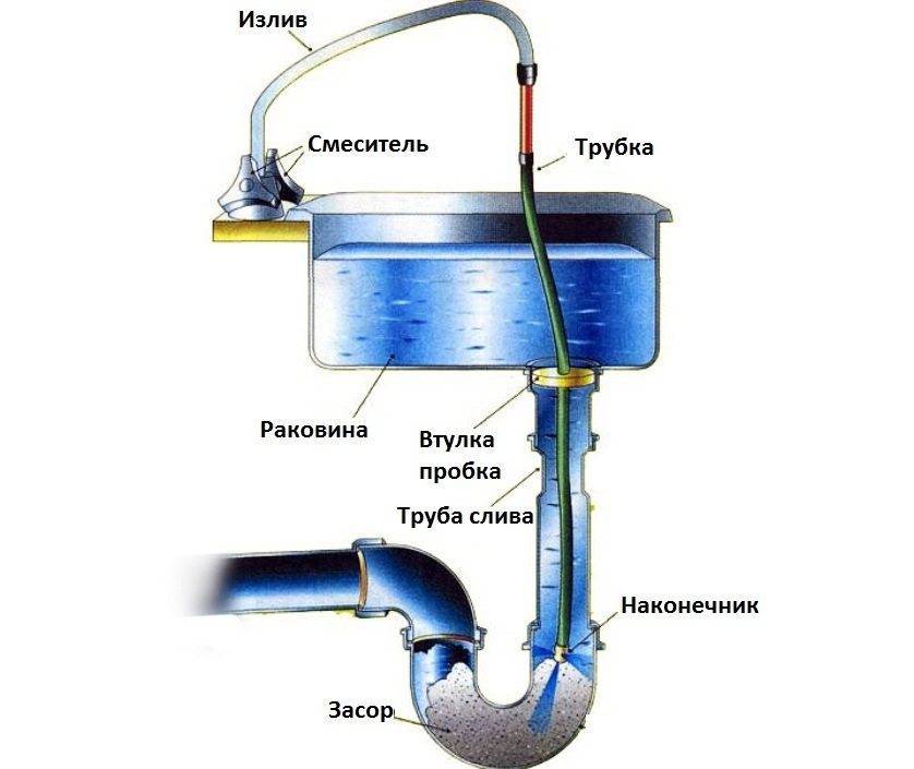 Прочистка канализации с помощью этого механического способа предполагает вытягивание пробки, которая закрывает просвет между стенками трубы. Прежде чем начинать процесс очистки труб, необходимо обеспечить свободный доступ к сливу. Для этого потребуется снять сифон, после чего можно будет вставлять устройство в систему.