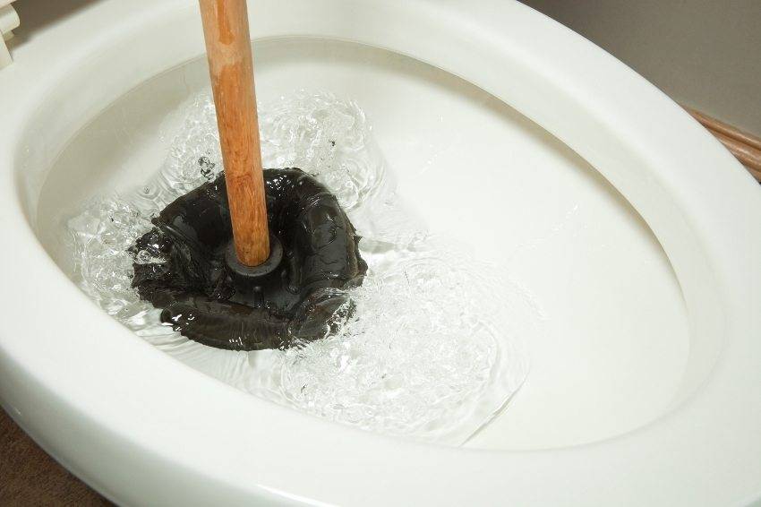 - Вантуз несколько раз поднимают и опускают, стараясь создать колебания воды. Такие действия способствуют разбивке отложений и проталкиванию более мелких частей дальше.