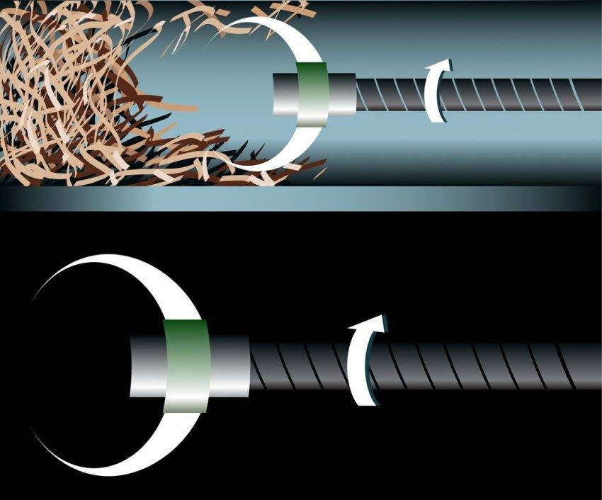 Когда трос наткнется на пробку, его надо осторожно покрутить для размельчения скоплений мусора. Если пробка слишком большая, трос придется вставлять несколько раз, очищая после каждого извлечения