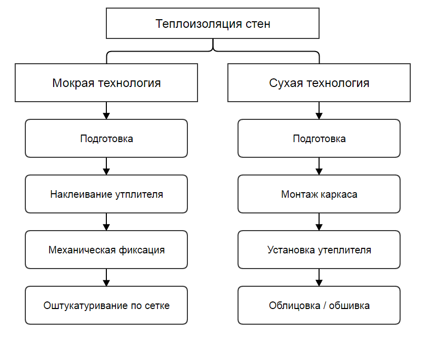 Алгоритм теплоизоляционных работ по разным схемам