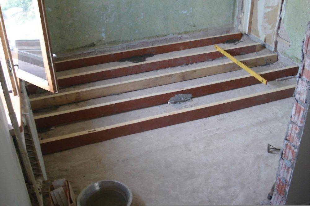 Если лаги очень старые, расшатанные и прогнившие, убирают все до бетонной основы