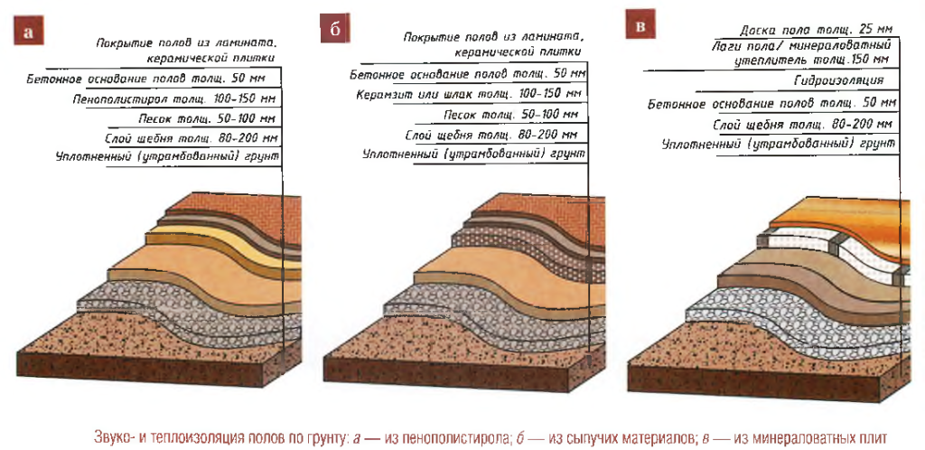Таким образом, в работе будет рассмотрена технология утепления земляного пола и пола по лагам, уложенным на бетонное и деревянное основание.