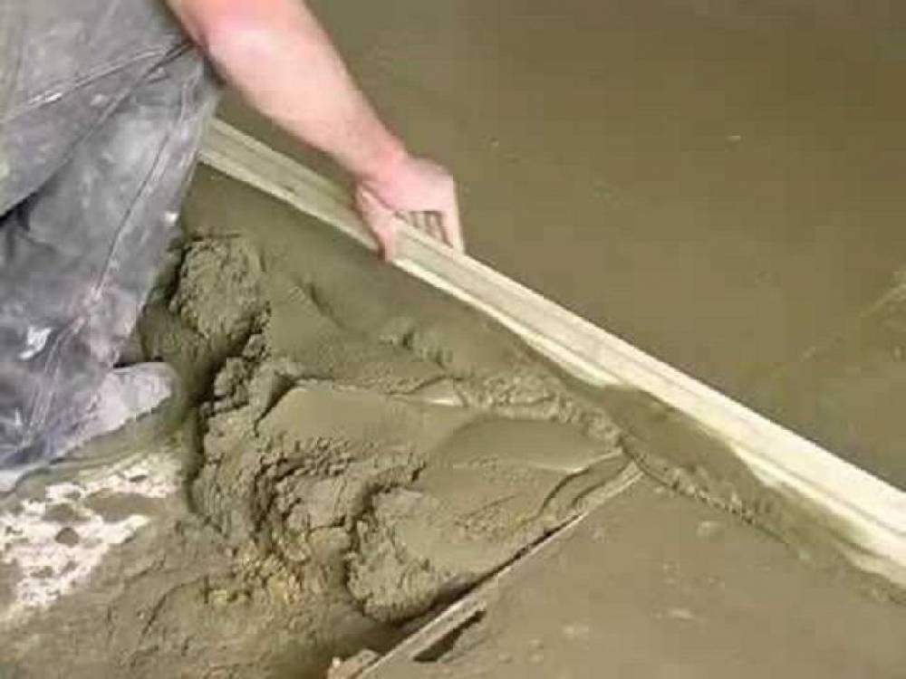 - Залейте основание бетонным раствором толщиной 5-10 см. Чем больше нагрузка на пол, тем толще должен быть слой.