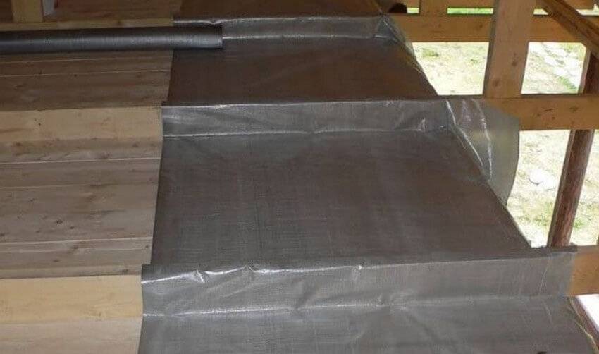 Укладка пароизоляции на доски