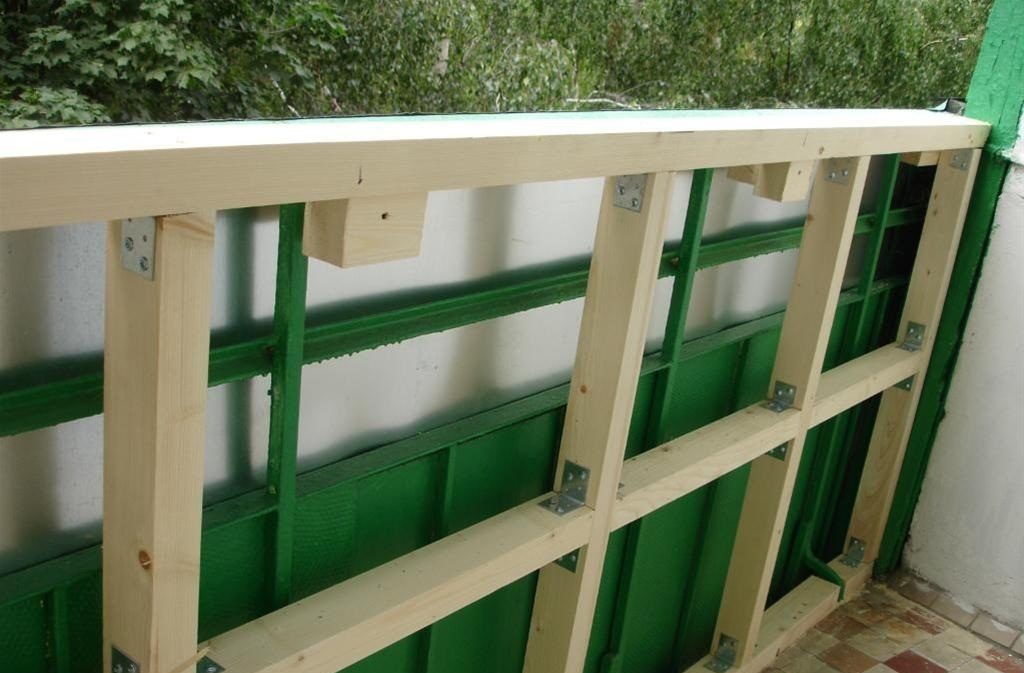 - В случае, если вы будете в дальнейшем обшивать балкон вагонкой, (что делают очень часто), то вам необходимо приняться за обустройство обрешетки.