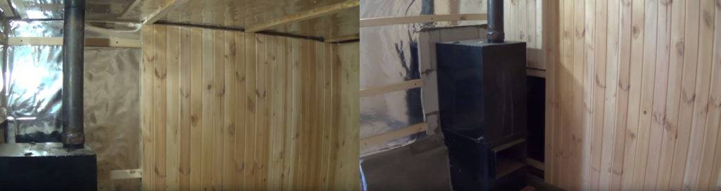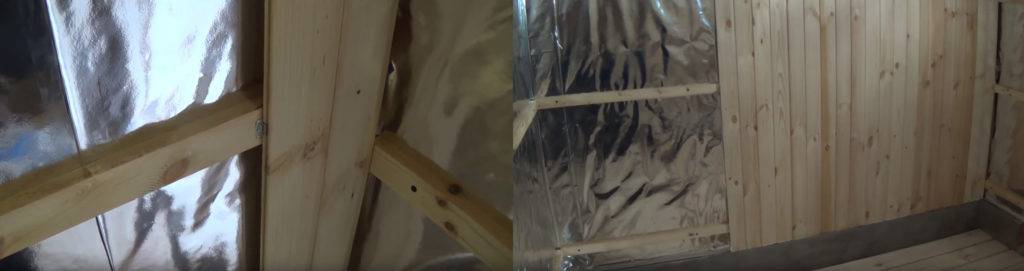 В банях из свежего сруба допускается просто крепить фольгу без использования дополнительного утеплителя, сверху ставить обрешетку и монтировать вагонку.