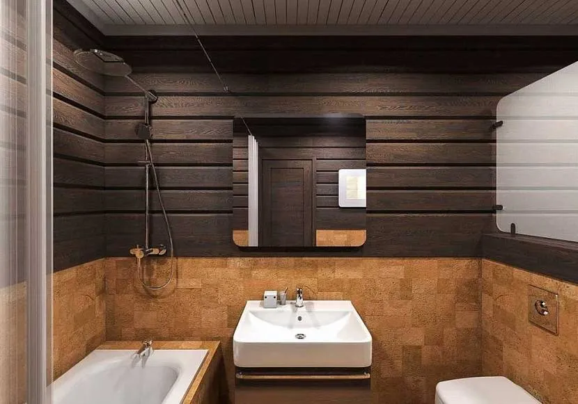 - деревянными панелями: отделать стены в ванной можно и специальными панелями из натуральной древесины. Они имеют защитное лаковое покрытие, благодаря чему их можно сразу прикреплять на обрешетку и не тратить лишнее время на их обработку;
