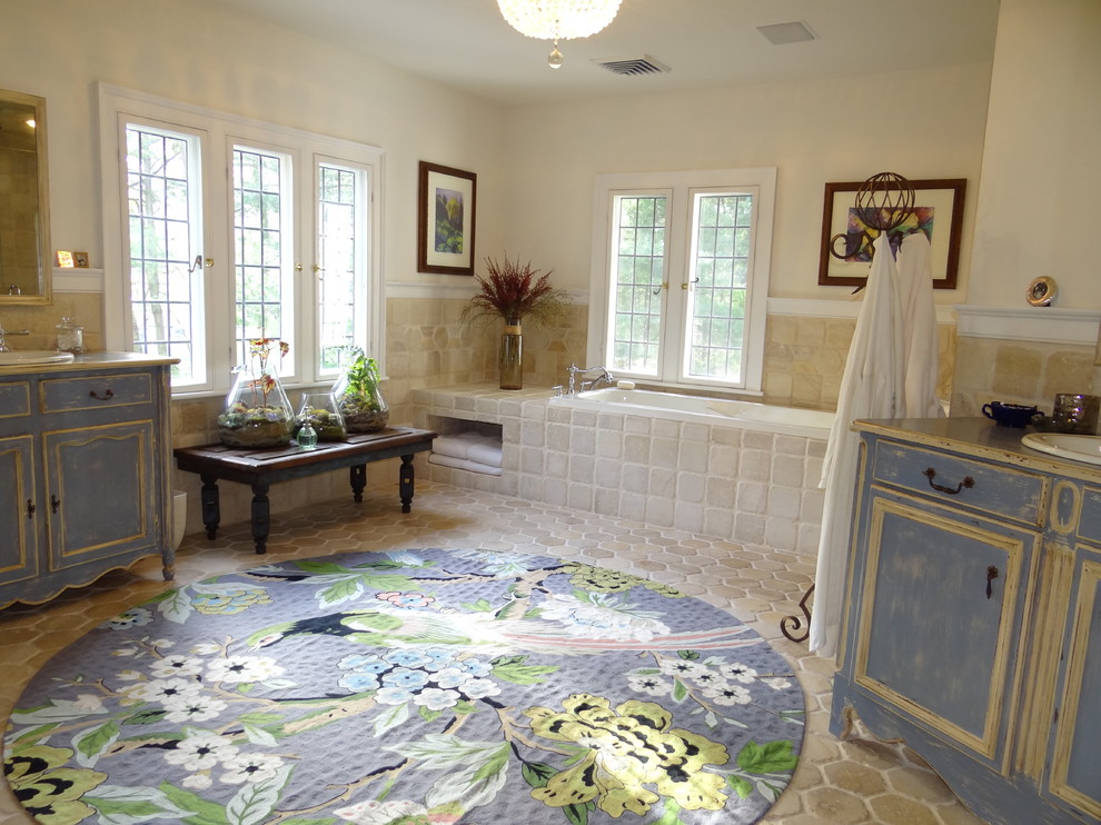 В первую очередь для этой комнаты важно большое количество света и простор. Несмотря на некоторую строгость и «сухость» стиля прованс, в интерьере ванной будут интересно выглядеть необычные цвета