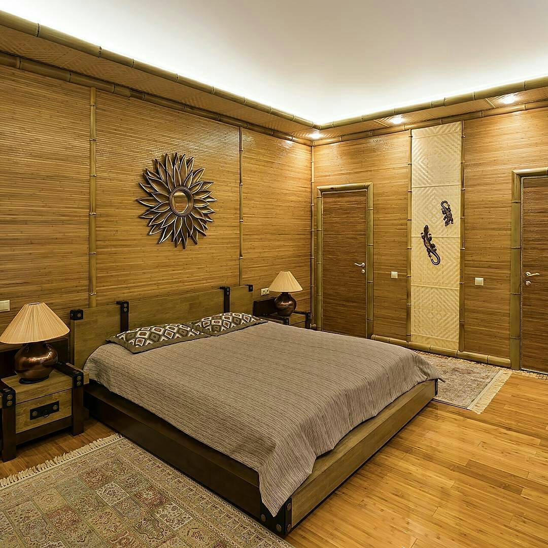 Обои – это бамбуковые рейки, наклеенные на марлевую основу или рисовую бумагу. Цветовая гамма обоев широка, они бывают однотонными, либо могут иметь природный рисунок.